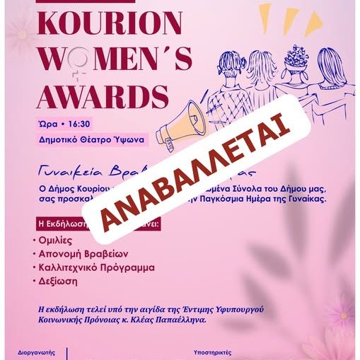 Λόγω της έκρυθμης κατάστασης που έχει δημιουργηθεί στο Δ.Δ. Ακρωτηρίου, η εκδήλωση που είχε προγραμματιστεί…