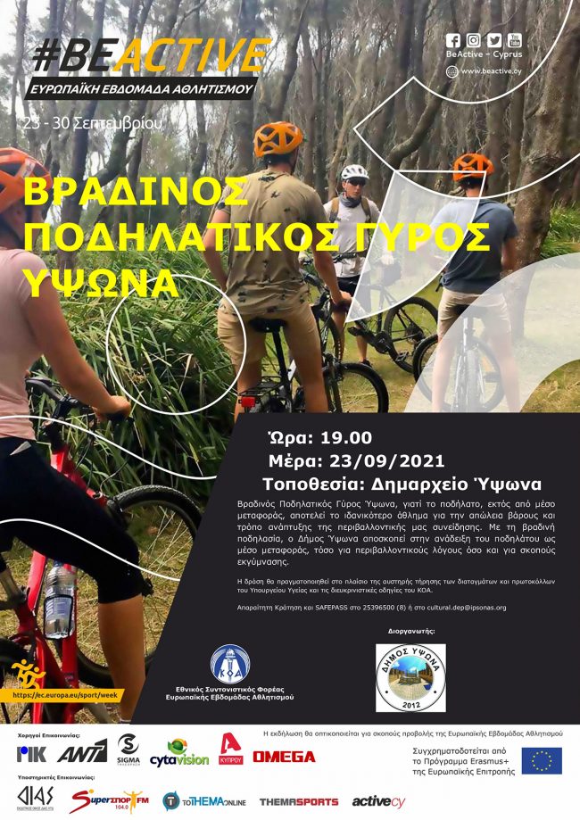 Στα πλαίσια της Ευρωπαϊκής Εβδομάδας Αθλητισμού ο Δήμος Ύψωνα διοργανώνει “Βραδινό Ποδηλατικό Γύρο Ύψωνα” . Tο ποδήλατο, εκτός απο μέσο μεταφοράς, αποτελεί το ιδανικότερο άθλημα για την απώλεια βάρους και…