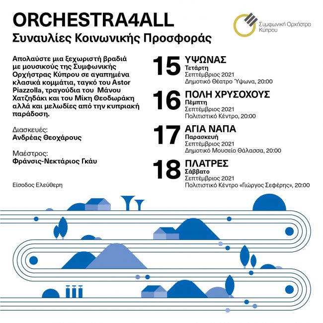 ΤΙ: Μουσικοί της Συμφωνικής Ορχήστρας Κύπρου αγκαλιάζουν τις κοινότητες με ένα πρόγραμμα διαφόρων ειδών μουσικής που ξεκινά από αγαπημένα κλασικά κομμάτια, και μας πάει στα ταγκό του Astor Piazzolla, τα τραγούδια του…