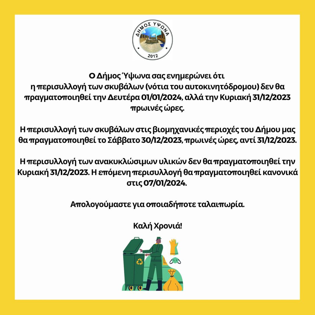 Ενημέρωση για περισυλλογή σκυβάλων και ανακυκλώσιμων υλικών