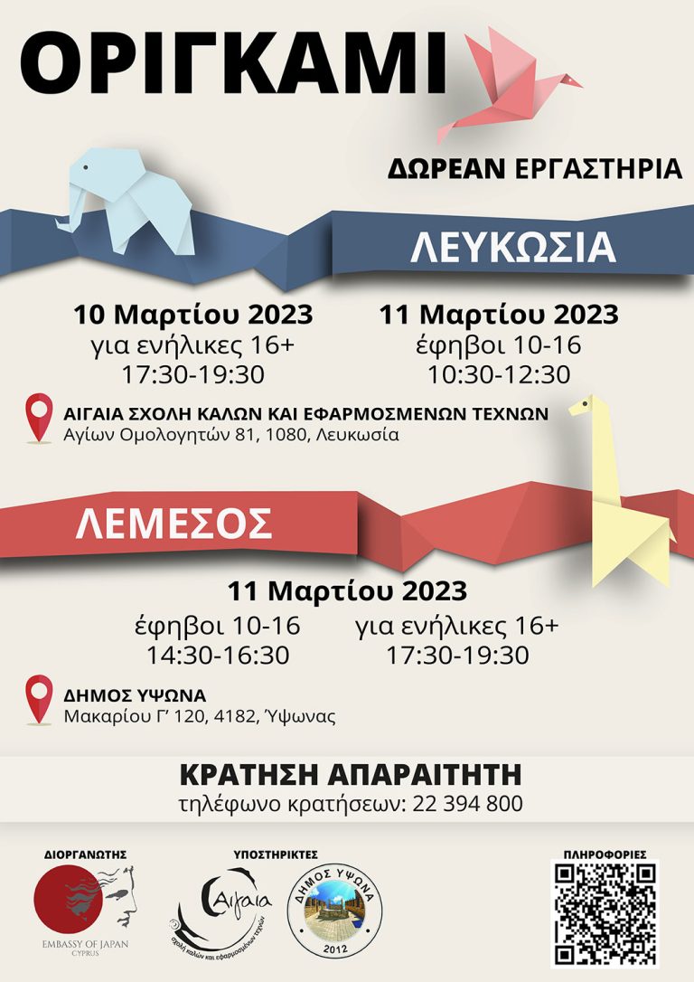 As the Origami Workshops will be conducted in Greek, the following announcement is available in Greek only. Η Πρεσβεία της…