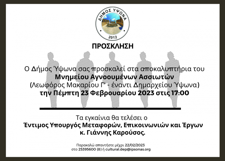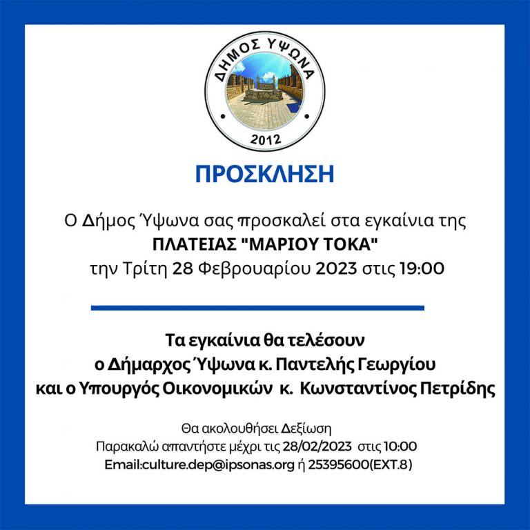 Ο Δήμος Ύψωνα με την υποστήριξη του Κέντρου Αίματος του Υπουργείου Υγείας διοργανώνει εθελοντική αιμοδοσία την Παρασκευή, 03 Μαρτίου 2023…