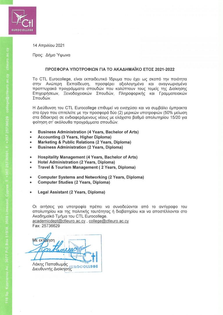 Το καλλιτεχνικό δυναμικό της Κύπρου και τους ανθρώπους του πολιτισμού, θα στηρίξει και φέτος ο Δήμος Ύψωνα. Ο Δήμος απευθύνει…