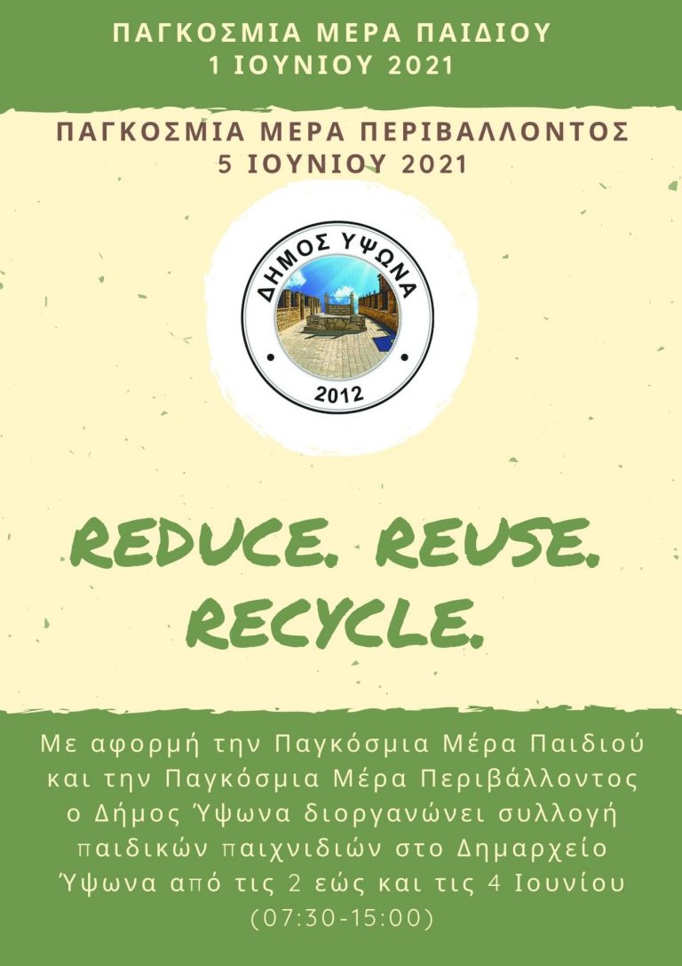 Ο Δήμος Ύψωνα ενημερώνει τους Δημότες του, ότι με αφορμή την Παγκόσμια Μέρα Παιδιού (1 Ιουνίου) και την Παγκόσμια Μέρα…
